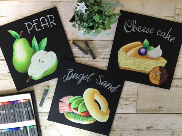 オイルパステルで黒板に書くチョークアート体験。