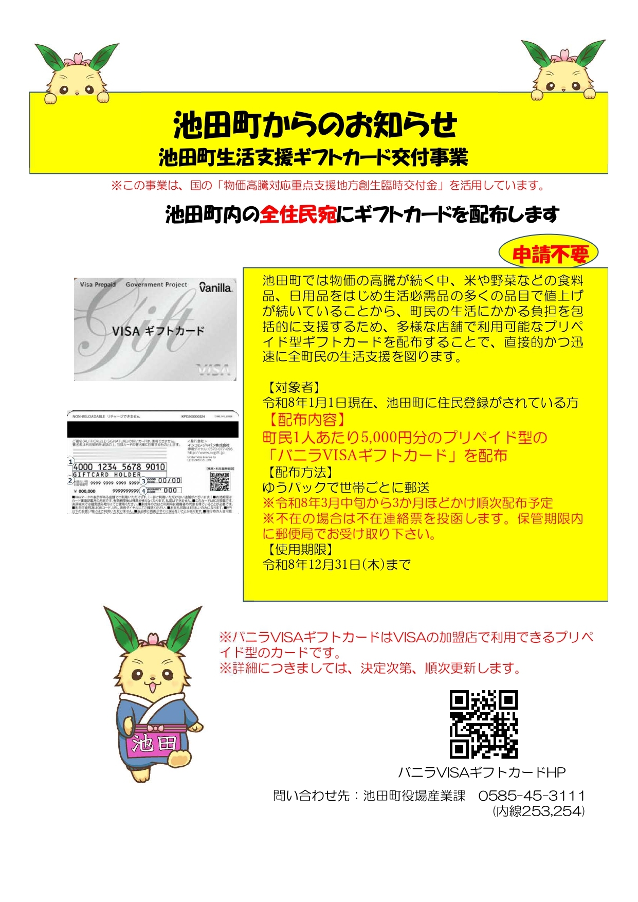 池田町では、国の「重点支援地方交付金」を活用し、町内の全住民に対して1人あたり5,000円のプリペイド型「VISAギフトカード」を配布する方針を決定しました。