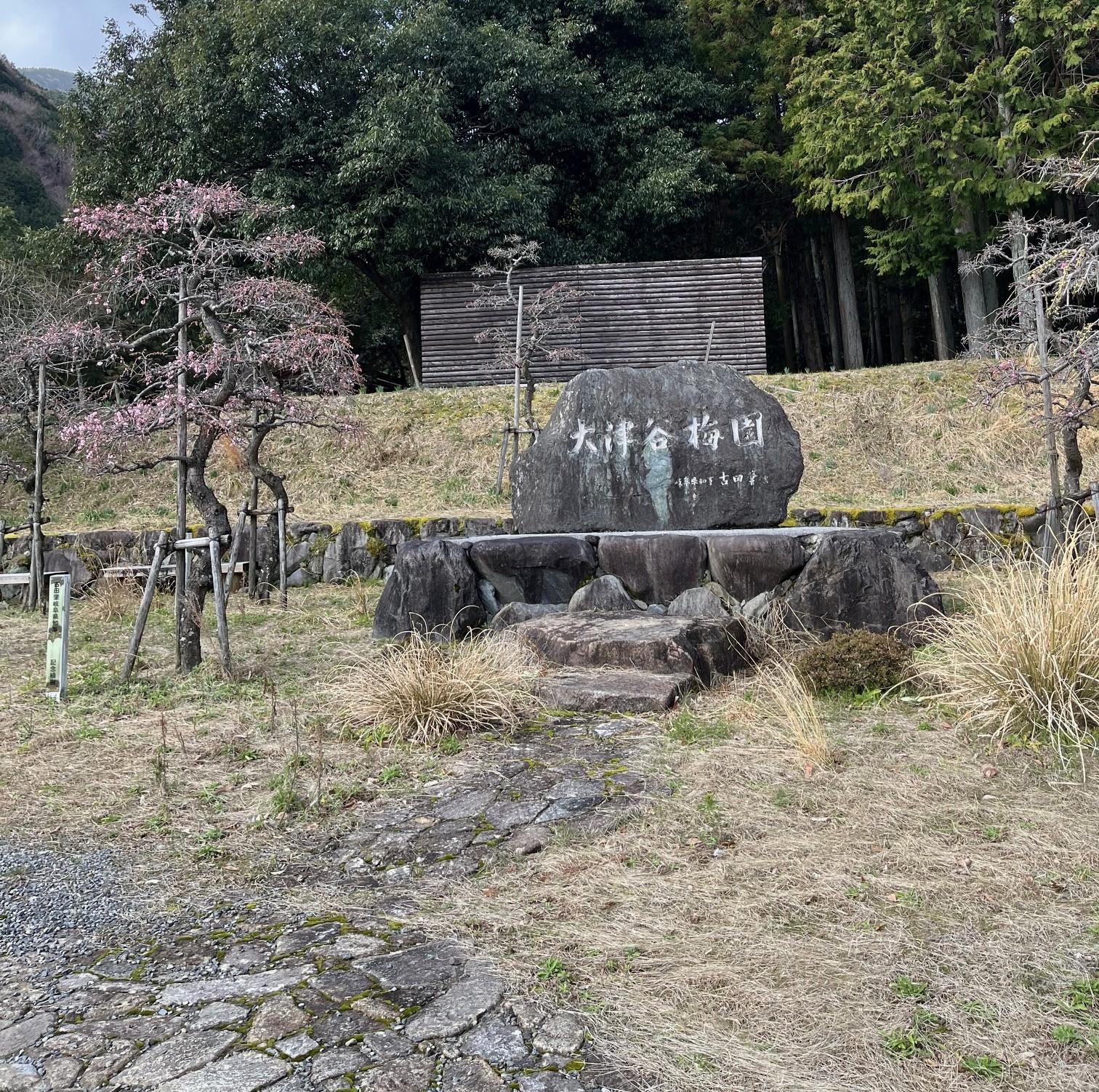 大津谷梅園の開花確認できました。