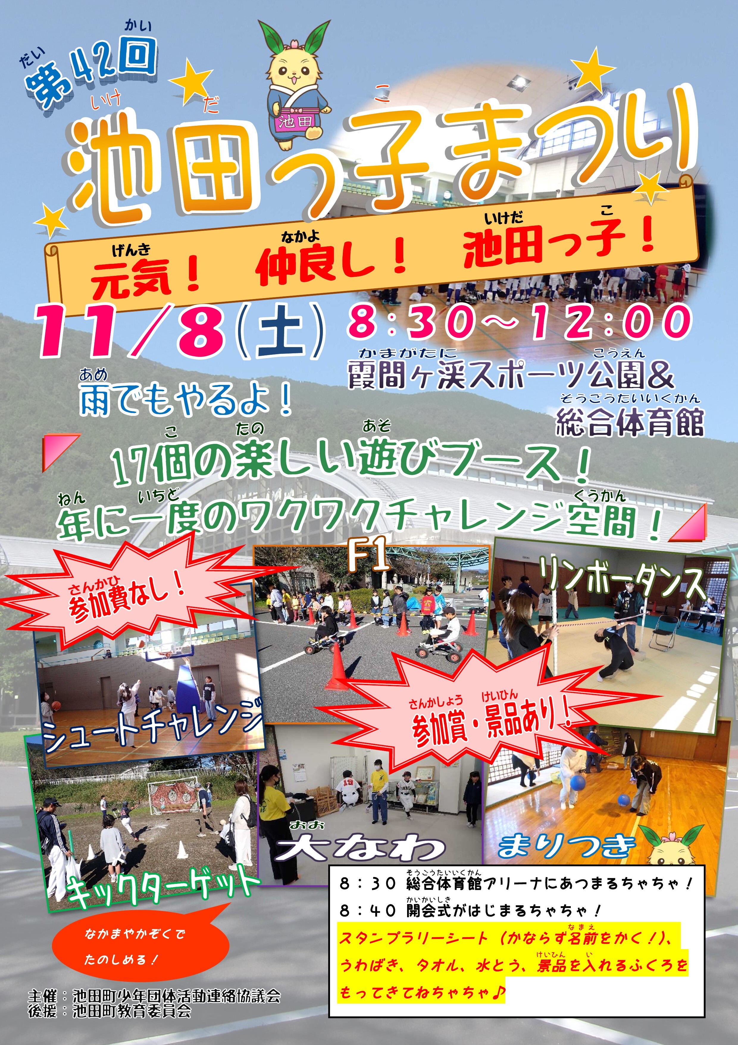 2025年11月8日(土)午前8時30分から12時まで、池田町霞間ヶ渓スポーツ公園と池田町総合体育館で「第41回池田っ子まつり」を開催します。(雨天決行)