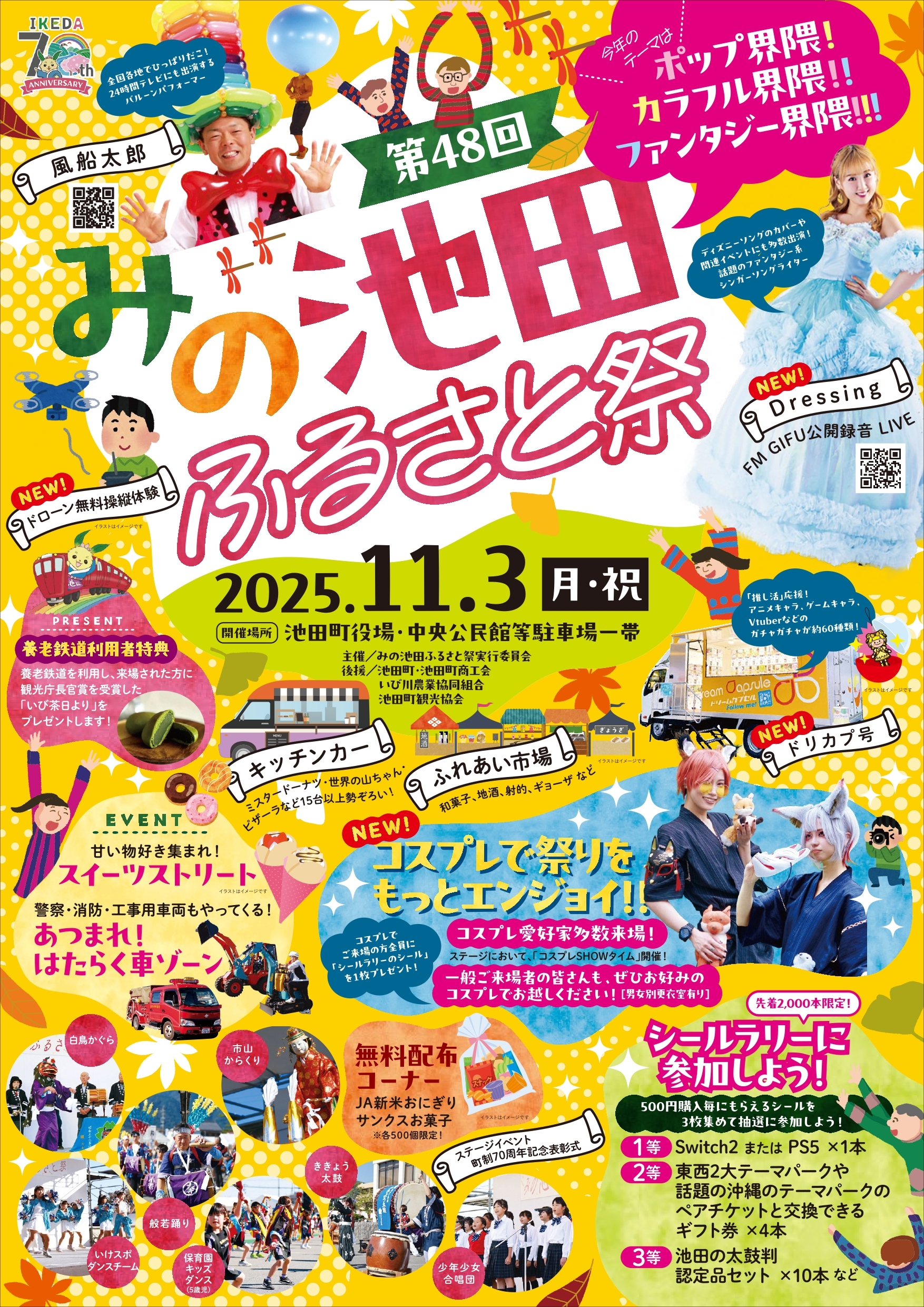 シールラリーの台紙はみの池田ふるさと祭本部テント・商工会本部テント・シールラリー抽選会テントにて配布します。